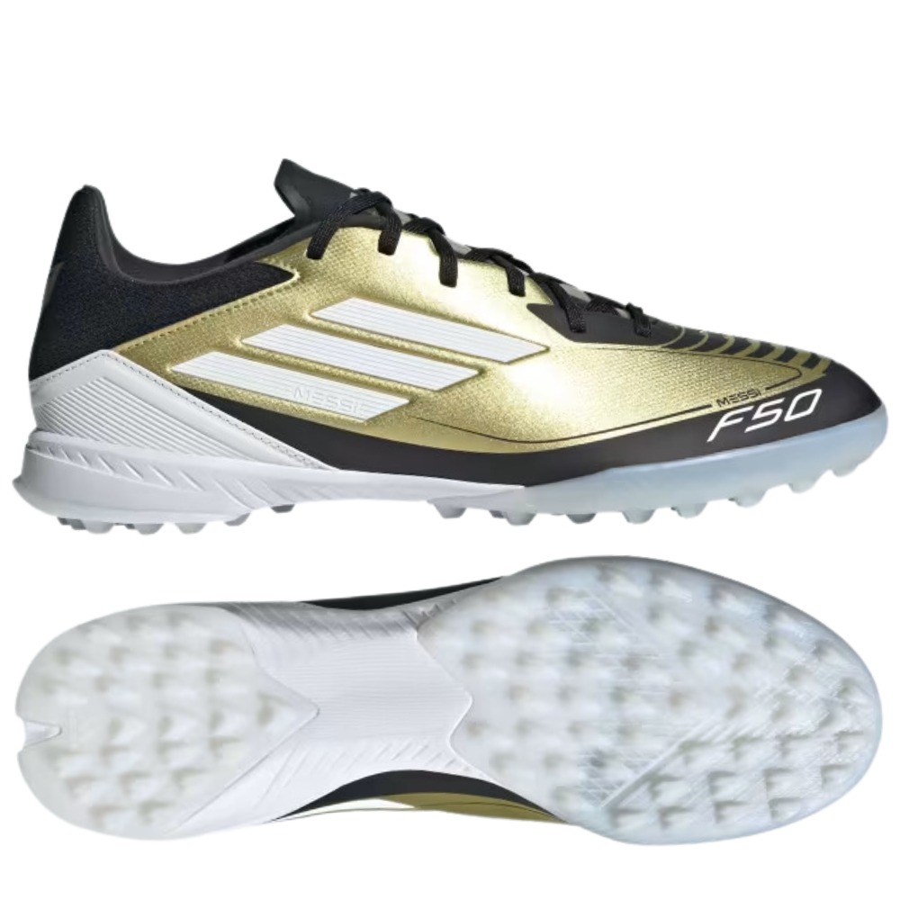 Giày đá bóng cỏ nhân tạo adidas F50 Messi League TF Vàng/Trắng - IG9282 là phần khúc tầm trung của dòng giày huyền thoại F50, sở hữu phối màu lấy cảm hứng từ đôi giày F50 Adizero Ballon d'Or "Gold/Black" - kỷ niệm danh hiệu Quả bóng vàng thứ hai của Messi vào năm 2010, adidas F50 Messi 2024 mang phom dáng mượt mà và thanh thoát, đúng chất giày bóng đá tốc độ.