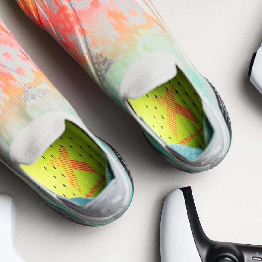 Giày đá bóng adidas X Speedflow + NumbersUP sở hữu một diện mạo mới mẻ và hiện đại với vẻ ngoài đầy năng lượng. Vẫn là cách kết hợp màu sắc tương tự như Copa và Predator, với màu xám nhạt chủ đạo và những mảng màu sắc tươi sáng được vẽ bằng tay đi từ xanh lam đến xanh lục. Chi tiết đặc trưng ở phần Upper là dòng chữ ‘99PAC’ - chỉ số tốc độ cao nhất trong FIFA.