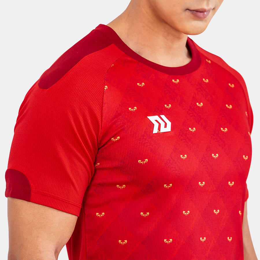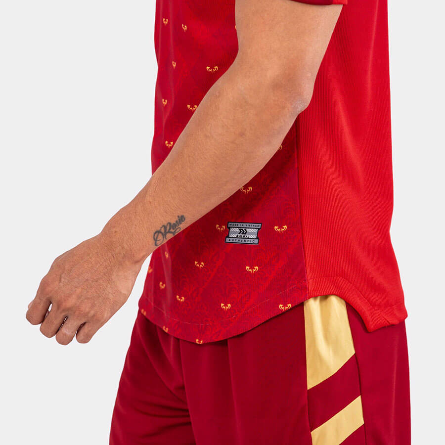 Kiểu dáng cá tính với vạt áo bầu thể hiện sự năng động, khỏe khoắn cho mỗi cầu thủ trên sân cỏ.