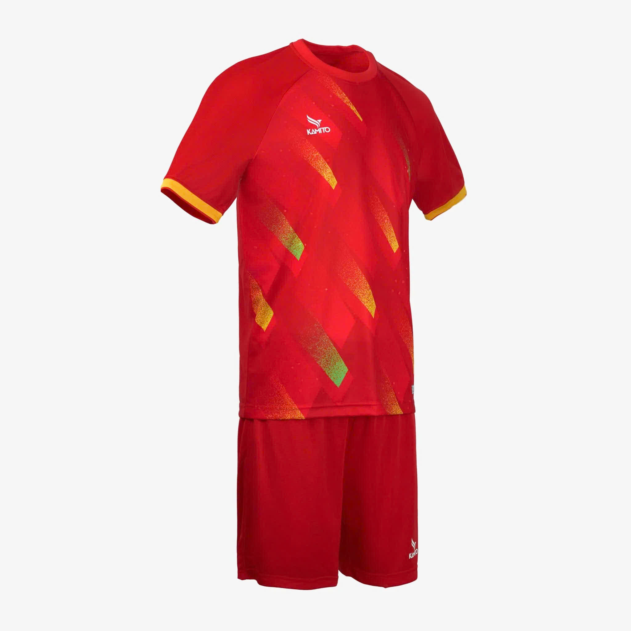 Bộ quần áo bóng đá Kamito Galaxy mang đến một diện mạo trẻ trung và năng động với họa tiết là các dải màu sắc độc đáo, giúp các cầu thủ nổi bật trên sân và tạo cảm giác tươi mới, năng động.