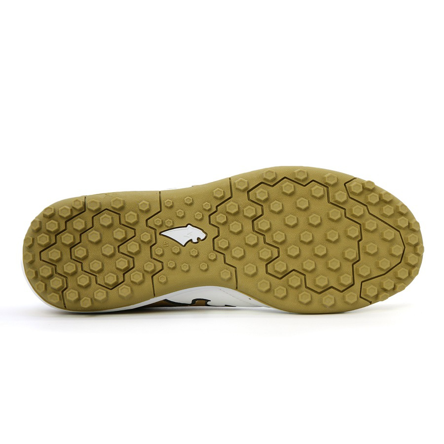 Thân giày đá banh Pan Thái Lan là da PU cao cấp mềm mại được kết hợp với bề mặt vân nổi cho khả năng tiếp xúc, khống chế bóng chuẩn xác, dễ lau chùi vệ sinh. Đế giày đá banh Pan Thái Lan là cao su chất lượng cao , có độ co giãn, dẻo , độ đế cao vừa phải. Được bố trí đều lớp đinh lục giác nhằm tạo độ bám với bề mặt sân cỏ, giữ thăng bằng và tránh trơn trượt kể cả khi trời mưa.
