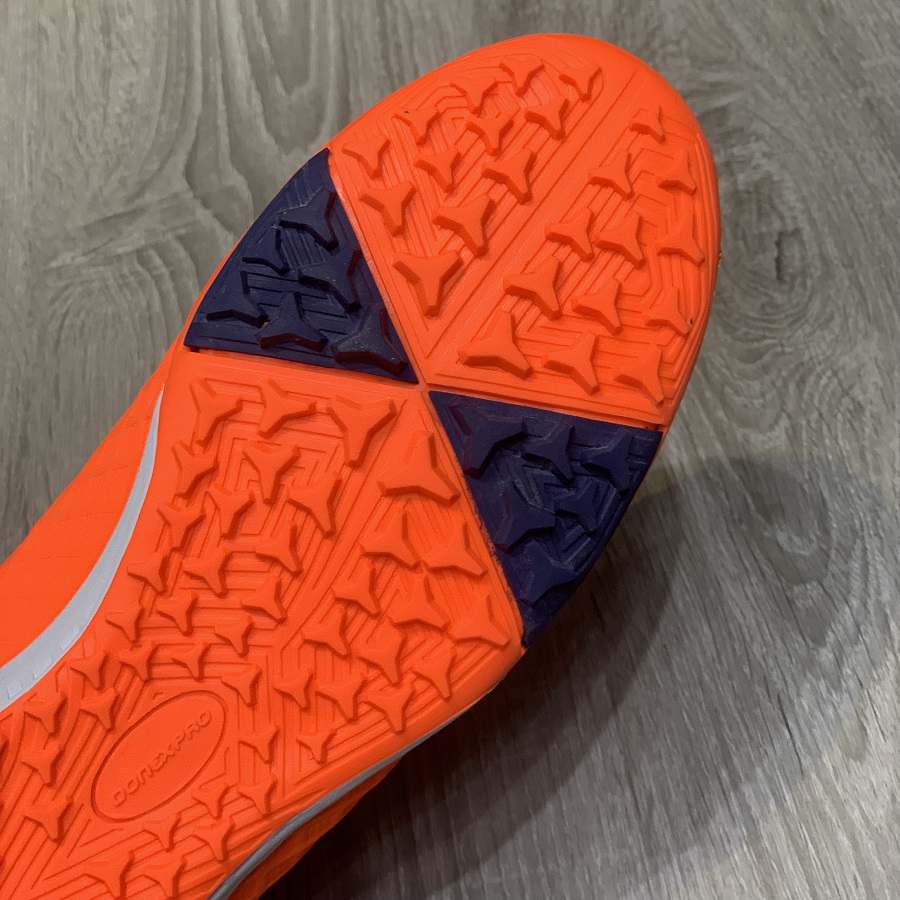 Đế giày có chất liệu cao su tự nhiên đúc nguyên khối, thiết kế đinh dăm đặc trưng giúp bám sân tốt hơn, tăng sự linh hoạt, dễ lướt chân và rê bóng. Form giày ôm chân hỗ trợ cho việc sút bóng hay di chuyển trên sân cỏ, tối đa hóa kiểm soát bóng trong mọi điều kiện thời tiết và mọi vị trí tiếp xúc bóng. Khi ta bứt tốc, phanh gấp, thay đổi hướng đột ngột thì chân ko hề bị xê dịch bên trong giày.