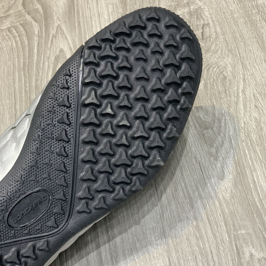 Đế giày có chất liệu cao su tự nhiên đúc nguyên khối, thiết kế đinh dăm đặc trưng giúp bám sân tốt hơn, tăng sự linh hoạt, dễ lướt chân và rê bóng. Form giày ôm chân hỗ trợ cho việc sút bóng hay di chuyển trên sân cỏ, tối đa hóa kiểm soát bóng trong mọi điều kiện thời tiết và mọi vị trí tiếp xúc bóng. Khi ta bứt tốc, phanh gấp, thay đổi hướng đột ngột thì chân ko hề bị xê dịch bên trong giày.