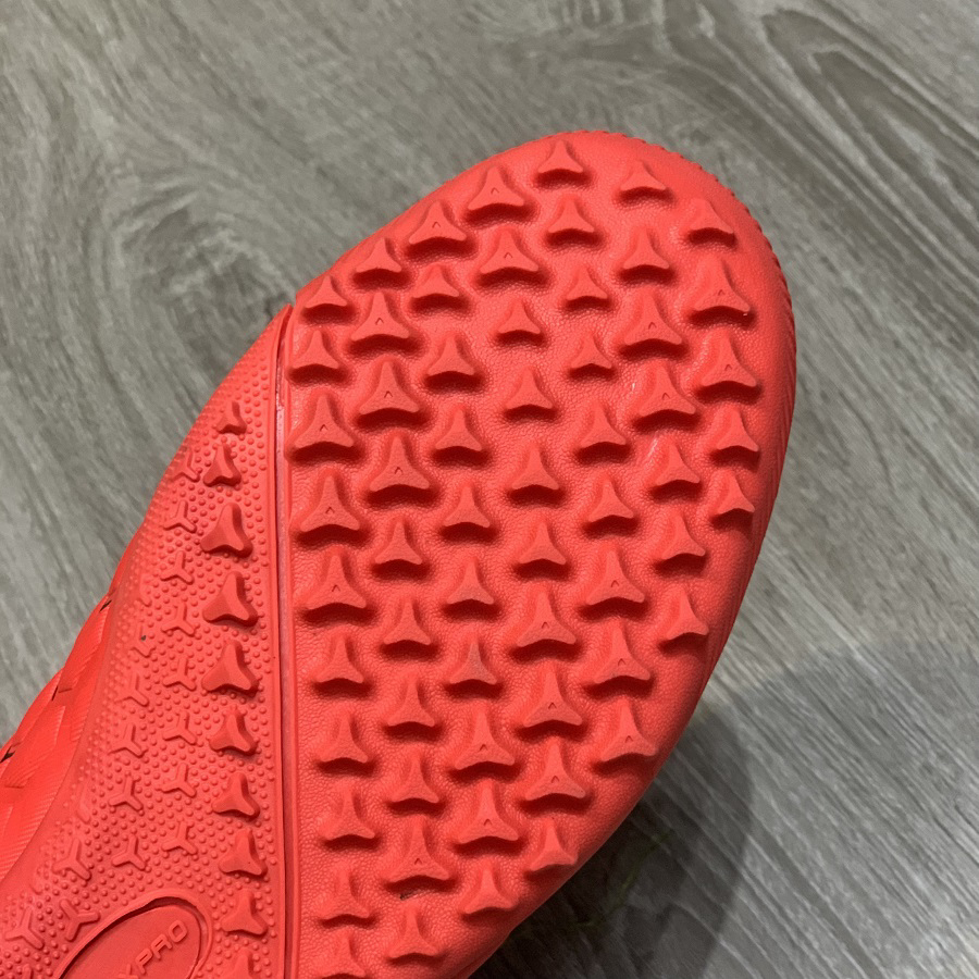 Khu vực lưỡi gà chế tạo nguyên khối và liền mảnh, khu vực khống về và sút bóng rất rộng rãi, đế giày kiểu TF làm từ cao su tổng hợp, kiểu này cưc bền có thể chơi 2-3 năm mà mòn không đáng kể. Đế giày luôn đảm bảo độ bám sân tuyệt đối, không trơn trượt bất kể trời mưa. Màu sắc nổi bật, bắt mắt phối logo, tên thương hiệu mang nét hiện đại. Form giày ôm chắc chân, dễ đi, phù hợp nhiều kiểu chân, hỗ trợ cho việc di chuyển trên sân cỏ và sút bóng.