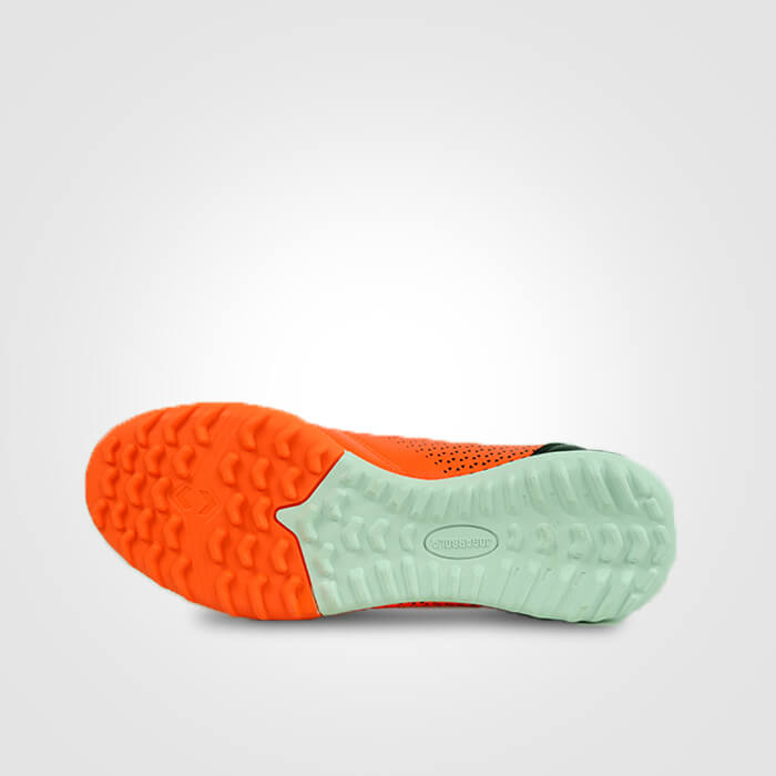 - Mặt đế cao su được thiết kế là loại đinh dăm TF quen thuộc cho sân cỏ nhân tạo với hệ thống đinh được phân bổ đều khắp chống trơn trượt rất hiệu quả, đồng thời giúp người chơi di chuyển linh hoạt và có những cú sút bóng chính xác hơn