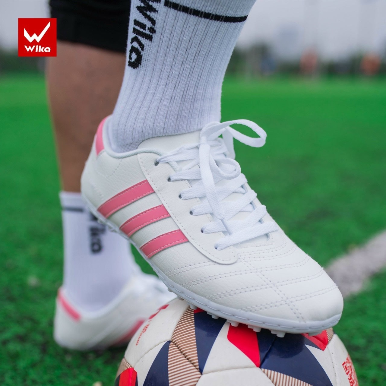 Giày đá bóng Wika 3 sọc CT3 - Màu Trắng/Hồng