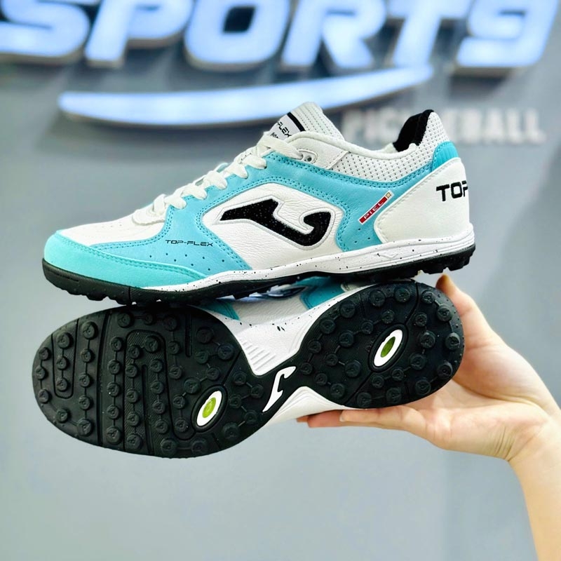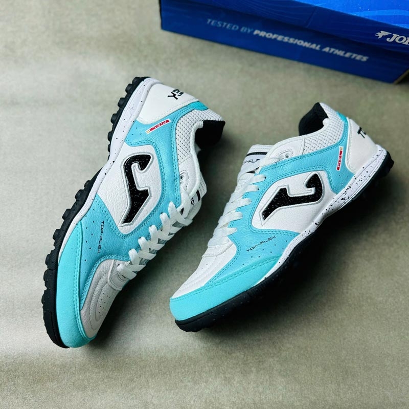 Giày đá bóng Joma Top Flex Flutor - Màu Xanh/Trắng - TOPS2642TF là lựa chọn lý tưởng cho người chơi bóng trên sân cỏ nhân tạo, ưu tiên cảm giác bóng tốt, độ bền cao và sự thoải mái khi mang. Với thiết kế da cao cấp, đế TF bám sân ổn định và phối màu nổi bật, đây là mẫu giày rất phù hợp cho đá phủi, luyện tập thường xuyên và thi đấu phong trào.