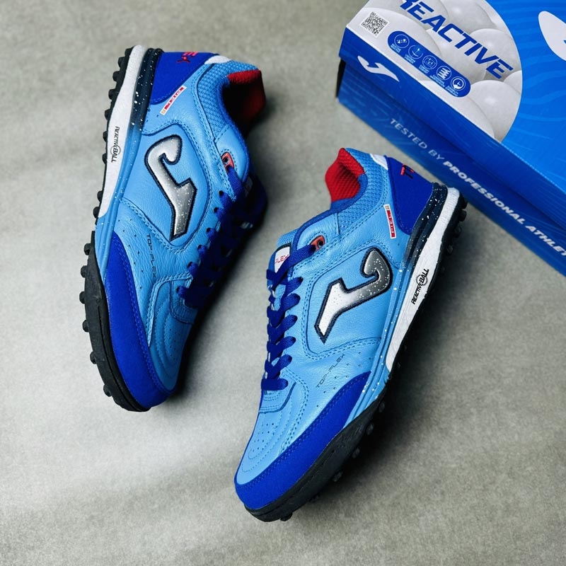 Giày đá bóng Joma Top Flex Rebound Turf - Xanh/Đen - TORS2605TF là lựa chọn đáng tin cậy cho người chơi bóng đang tìm kiếm một đôi giày bền, êm chân, bám sân tốt và giá hợp lý. Với upper mềm mại, đệm Rebound đàn hồi và đế TF ổn định, mẫu giày này đáp ứng tốt nhu cầu đá cỏ nhân tạo thường xuyên, từ tập luyện đến thi đấu phong trào.