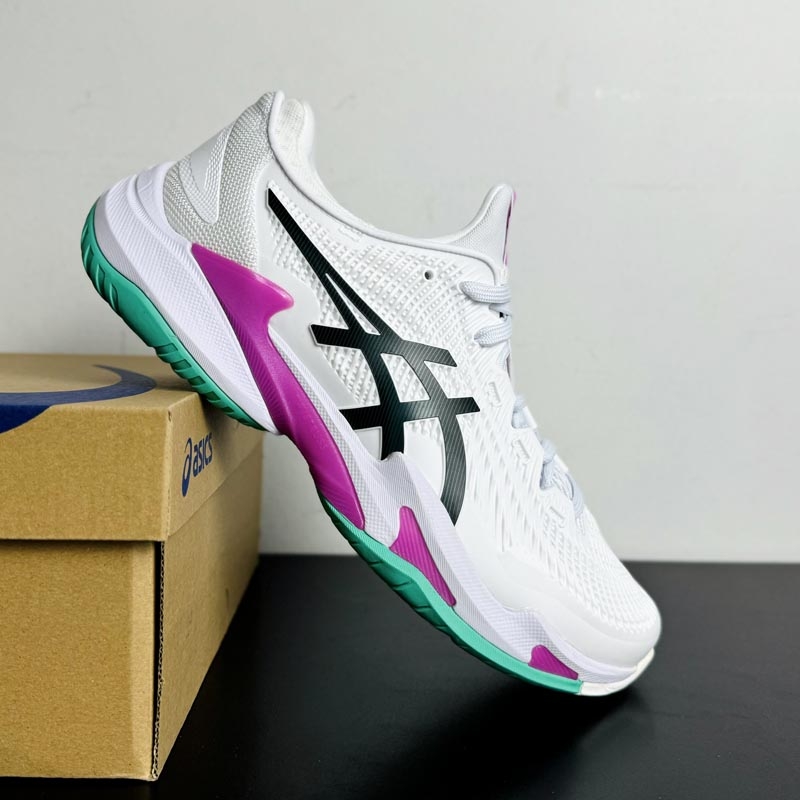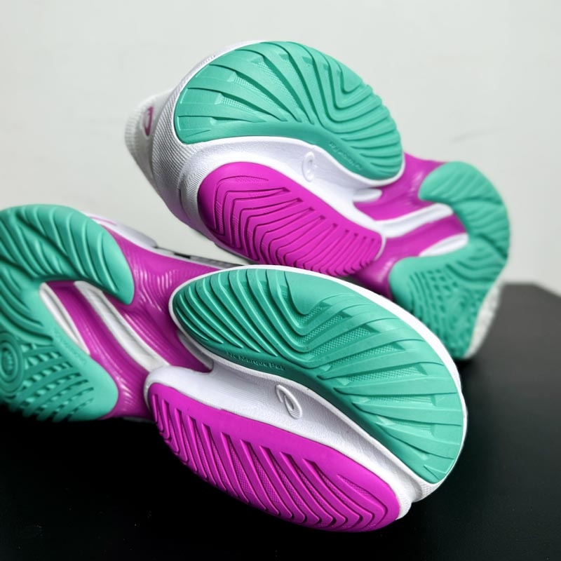 Form giày được ASICS tối ưu riêng cho tennis và pickleball, với dáng ôm gọn bàn chân, phần mũi và thân giày đủ rộng để di chuyển linh hoạt nhưng vẫn giữ được độ chắc chắn. Form này đặc biệt phù hợp cho các pha di chuyển ngang, đổi hướng nhanh và bứt tốc liên tục, giúp người chơi giữ được sự ổn định trong suốt trận đấu.