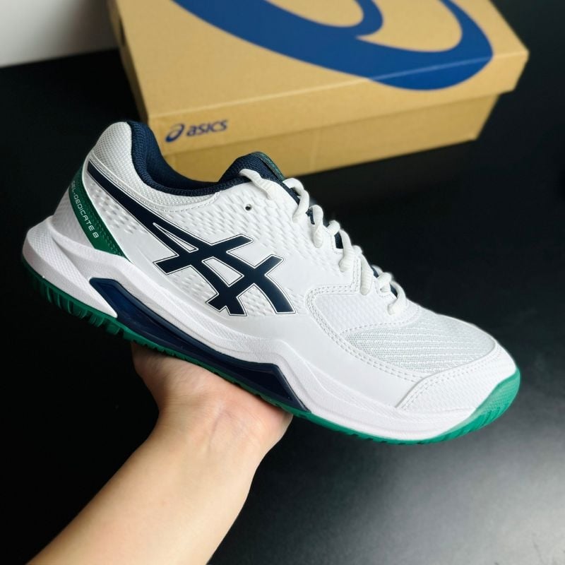 Giày Pickleball Asics Gel Dedicate 8 - 1041A410-105 - White/Midnight mang đến một thiết kế hiện đại, trẻ trung nổi bật với trọng lượng nhẹ, bám tốt, giảm chấn hiệu quả, phù hợp cho các môn thể thao pickleball, cầu lông, tennis.