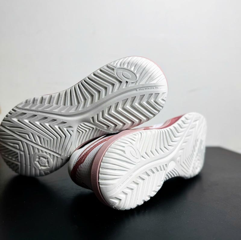 Form giày được thiết kế đặc biệt cho bàn chân nữ, ôm gọn và vừa vặn, giúp người chơi dễ dàng thực hiện các bước di chuyển ngang, đổi hướng đột ngột hoặc các pha bật nhảy mà không cảm thấy bó chặt. Thiết kế form này mang đến sự chắc chắn và tự tin tuyệt đối trong từng bước di chuyển.