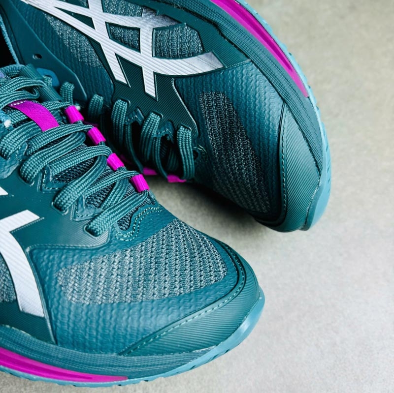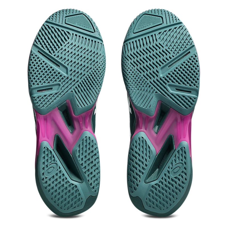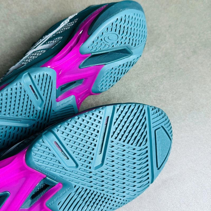 Đế ngoài sử dụng cao su AHAR® Plus có khả năng chống mài mòn cao, phù hợp với sân cứng và môi trường thi đấu cường độ lớn. Thiết kế rãnh đế đa hướng giúp tăng độ bám và hỗ trợ các chuyển động ngang liên tục trong tennis và pickleball.