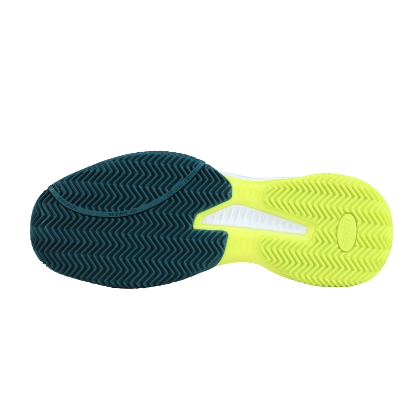 • Công nghệ J-Rubber bám sân tối ưu, đế cao su đặc biệt tăng ma sát, chống trơn trượt trên nhiều loại mặt sân (sân cứng, acrylic, xi măng…).