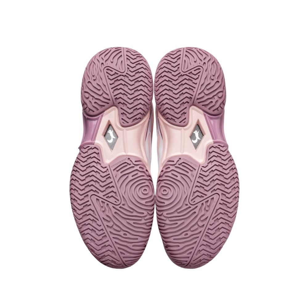 Đế ngoài cao su non-marking: chống trượt, đàn hồi tốt ngay cả trên mặt sân ẩm hoặc bụi. Bổ sung thanh tổng hợp gia cố, giúp giữ form đế, kết nối chắc chắn giữa gót – vòm – mũi giày, hỗ trợ phản xạ nhanh, bật nhảy chính xác.