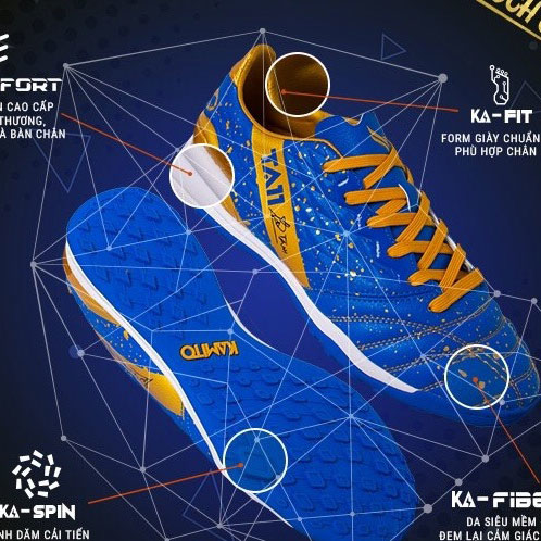 - Form giày hợp bàn chân người Việt áp dụng theo chuẩn KA-FIT cùng lớp đệm gót, giúp cầu thủ luôn thoải mái trong suốt trận đấu.