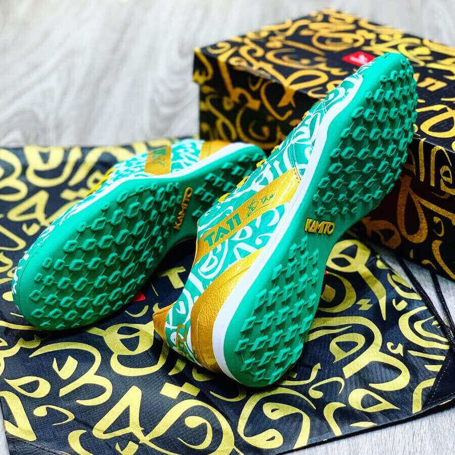 Trong bộ sưu tập Woncup, Kamito mang tới những thiết kế hoàn toàn mới dành riêng cho TA11 với những họa tiết đậm chất Qatar trải dài trên thân giày. Bên cạnh đó, giày Kamito TA11 Woncup còn có hộp giày, túi đựng giày đi kèm và những sản phẩm này cũng được thiết kế đồng bộ cùng các sản phẩm khác trong bộ sưu tập.