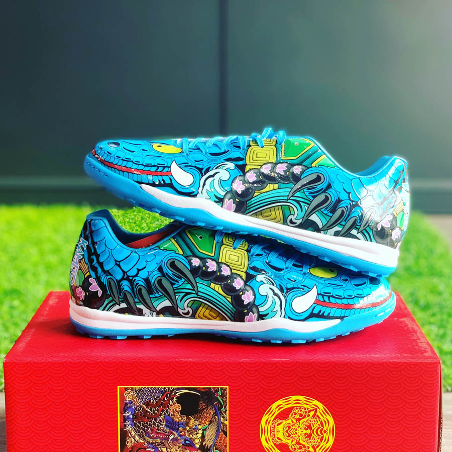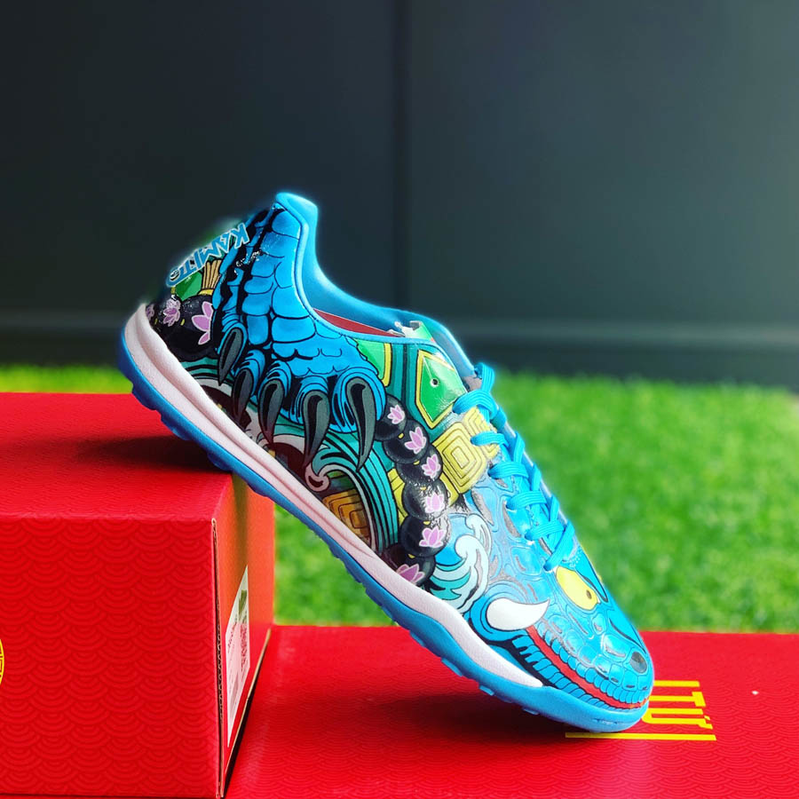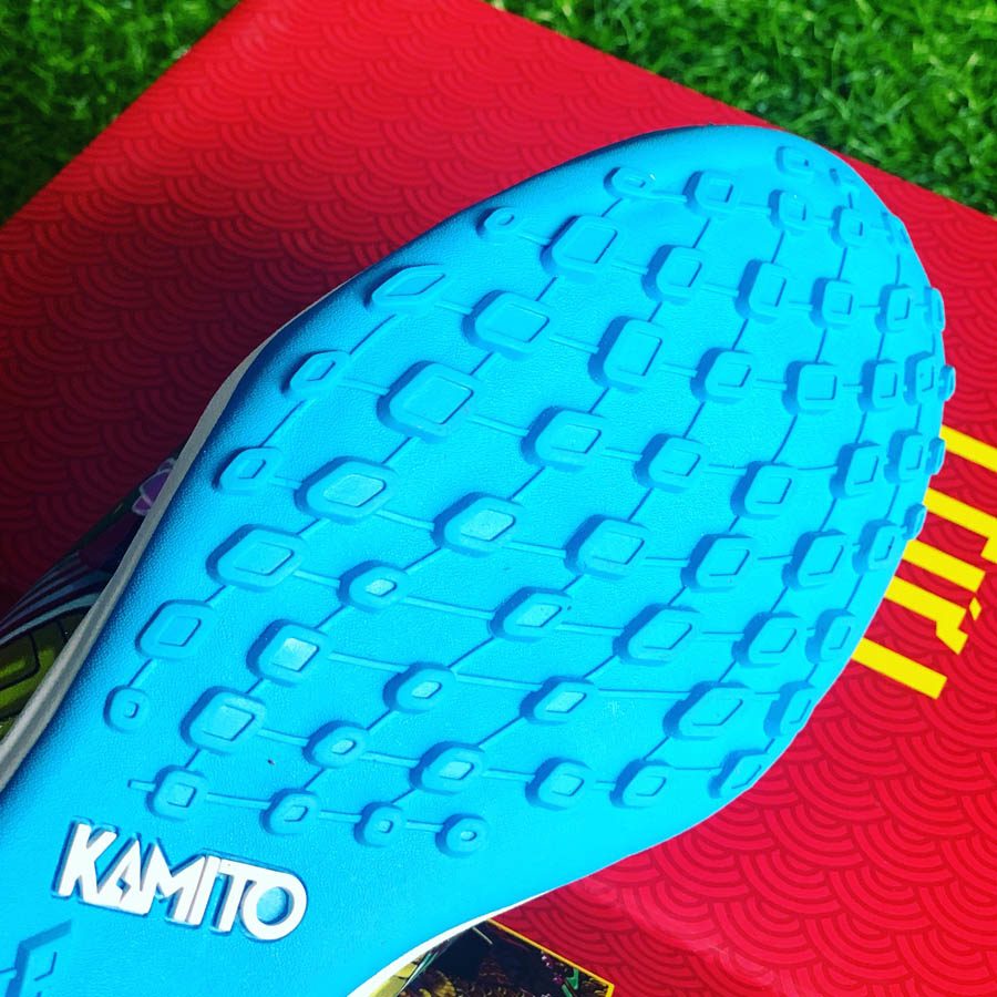 Bộ đế giày áp dụng công nghệ KA-SPIN với dàn đinh dăm được sắp xếp khoa học, giúp bám sân hiệu quả ngay cả khi trời mưa sân trơn bóng ướt. Form giày áp dụng chuẩn KA-FIT, ôm sát và phù hợp với bàn chân người Việt.