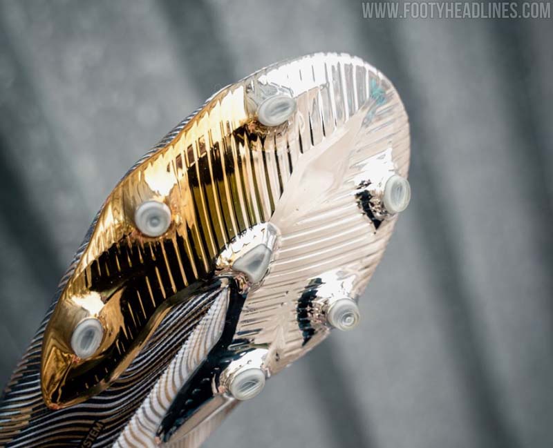 Sự mới lạ của BST đến từ silo Nemeziz với thiết kế mới, chúng ta thấy phần trên có nhiều màu, trông rất hầm hố. Ở mặt giữa được phối màu siêu sạch, trắng và vàng. Còn phần bên ngoài là sự kết hợp của đen và vàng.