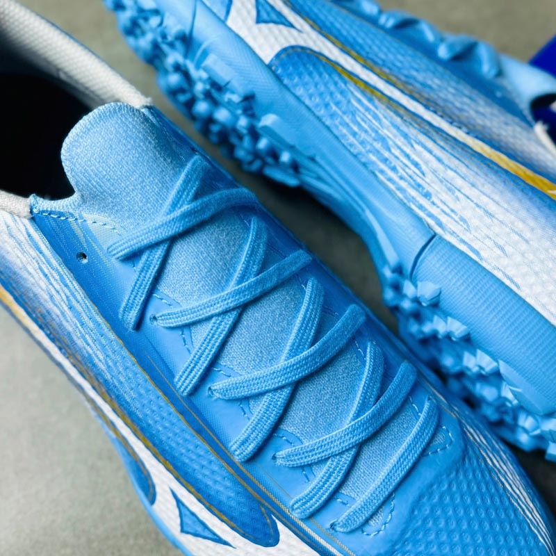 Bên trong giày là lớp đệm và lót giày êm ái, hỗ trợ giảm áp lực lên lòng bàn chân khi chạy và tiếp đất. Điều này đặc biệt quan trọng trên sân cỏ nhân tạo – nơi mặt sân có độ cứng cao hơn so với sân cỏ tự nhiên. Lớp đệm vừa phải giúp duy trì sự ổn định, không quá mềm gây lún chân, đồng thời vẫn đảm bảo cảm giác chắc chắn khi bứt tốc.