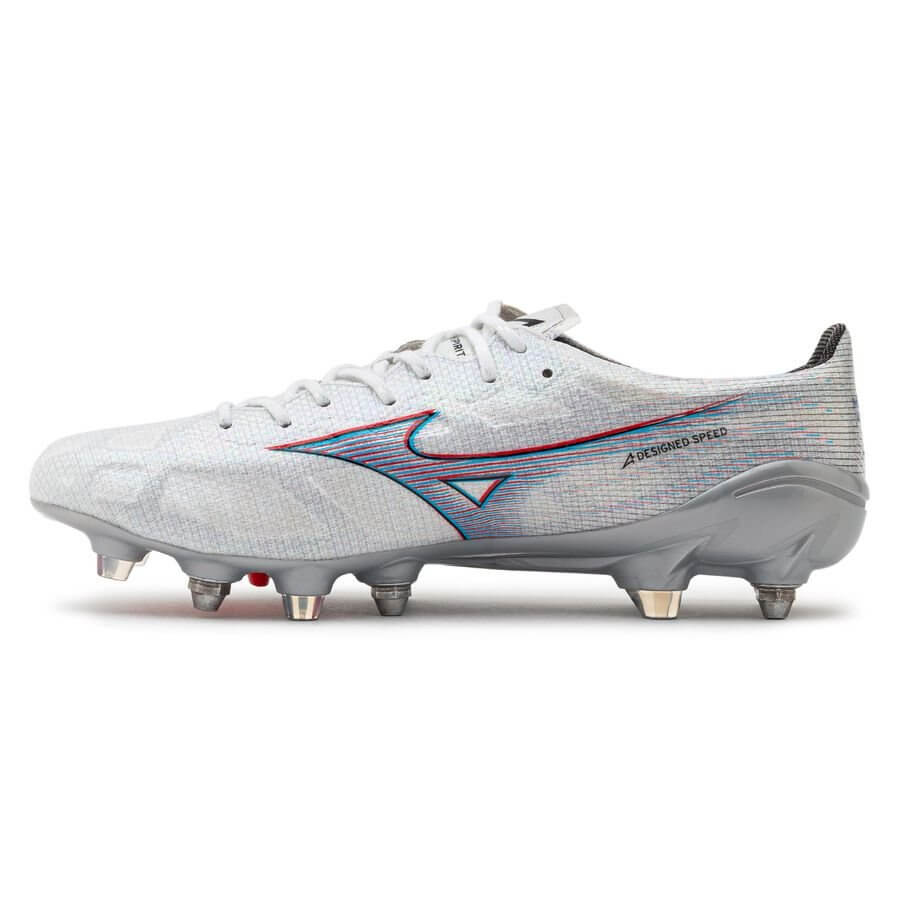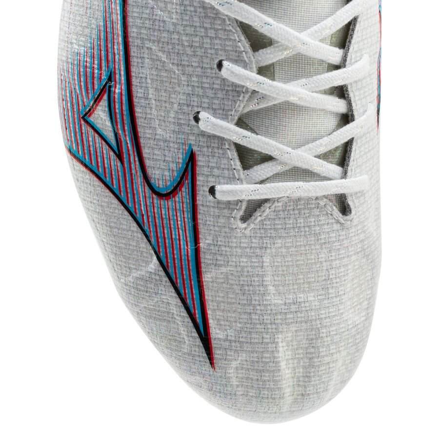 Mizuno Alpha Made in Japan SG - Bạc Trắng là phân khúc giày bóng đá cao cấp nhất sân cỏ tự nhiên. Khác với các phiên bản cao cấp của Morelia Neo, Mizuno Alpha được làm từ sợi dệt (thay thế cho loại da k) tạo nên một đôi giày có upper siêu mỏng và trọng lượng siêu nhẹ.