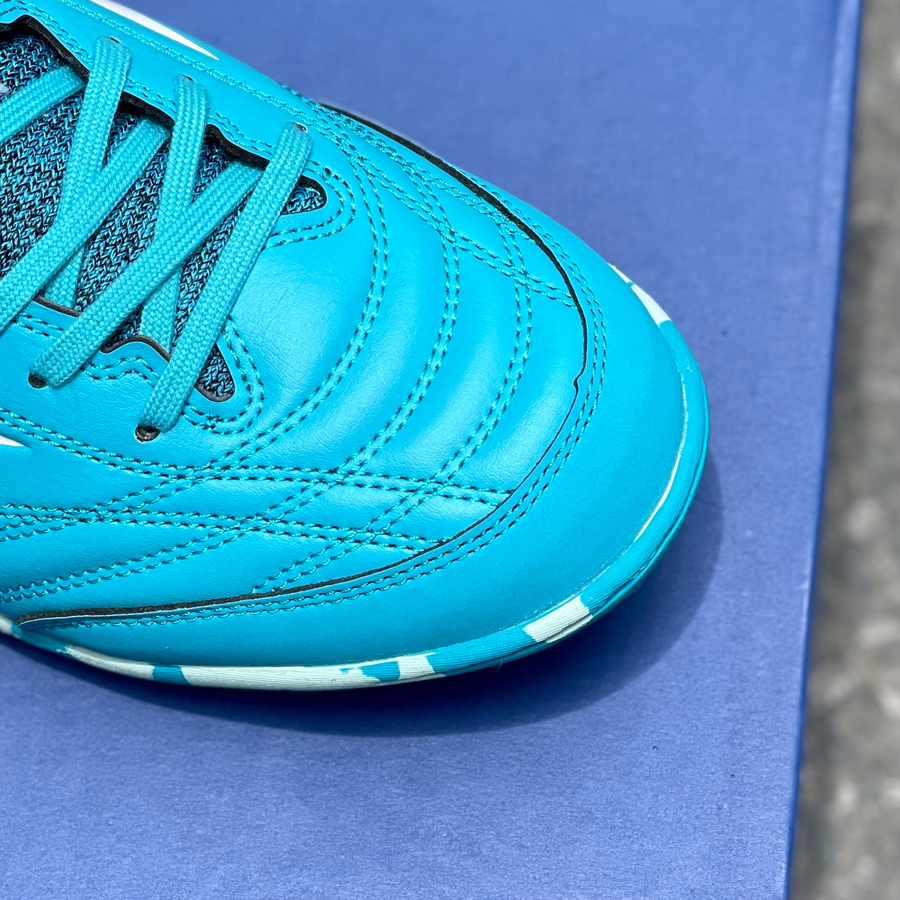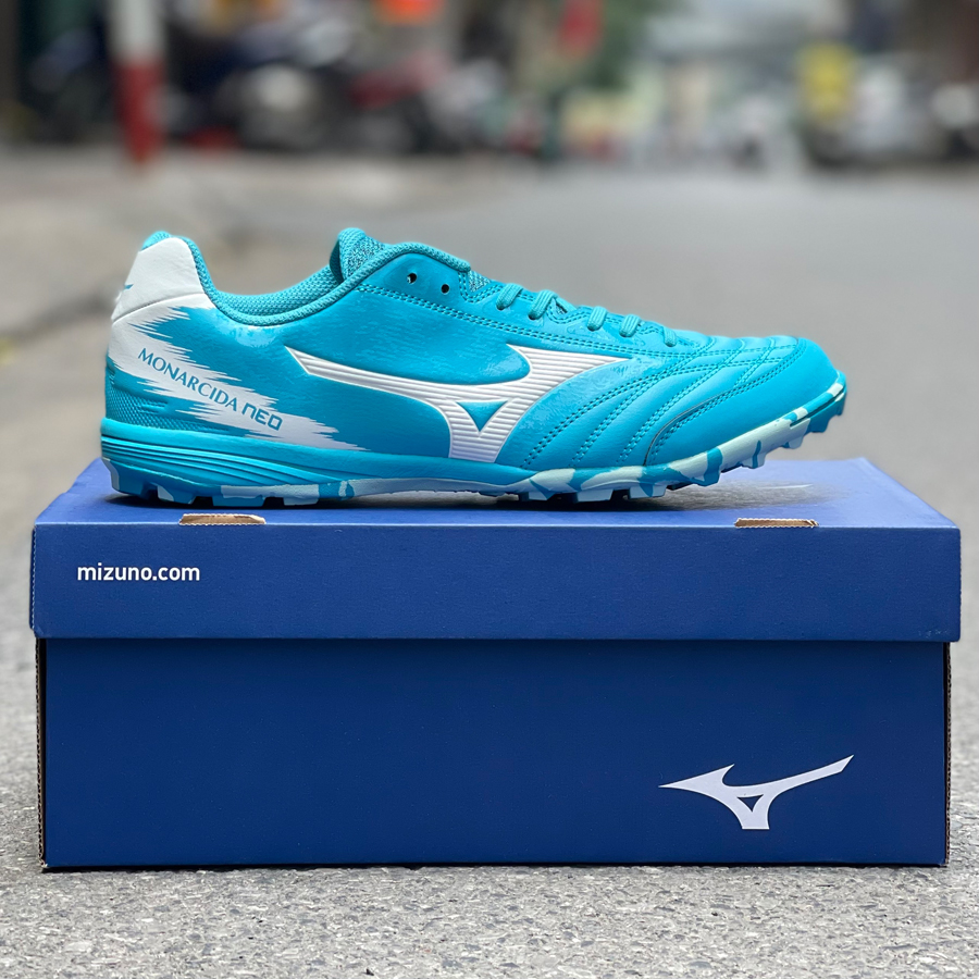 Mizuno Monarcida Neo Sala Pro TF - Q1GB212123 - Xanh Ngọc/Trắng là mẫu giày đá bóng cỏ nhân tạo cao cấp nhất của dòng Monarcida, được đánh giá cao về toàn diện. Đôi giày với tông màu chủ đạo là xanh ngọc siêu hot kết hợp với logo Mizuno màu trắng tuy đơn giản, nhẹ nhàng nhưng cũng vô cùng nổi bật.