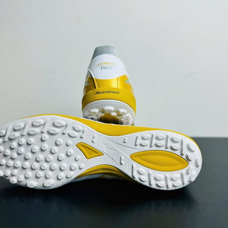 Điểm nâng cấp đáng chú ý trên các dòng giày Mizuno cao cấp đời mới, trong đó có Morelia Neo 4 Pro AS, chính là bộ đế trụ tròn cải tiến. Thiết kế đế trụ tròn không chỉ giúp tăng độ bền, mà còn phân tán lực tác động đều hơn, mang lại cảm giác chắc chắn và êm ái khi di chuyển. Các rãnh nhỏ trên bề mặt đế được bố trí khoa học, giúp tăng độ bám sân hiệu quả, đặc biệt phát huy tác dụng trên mặt sân cỏ nhân tạo trơn hoặc có hạt cao su mỏng.