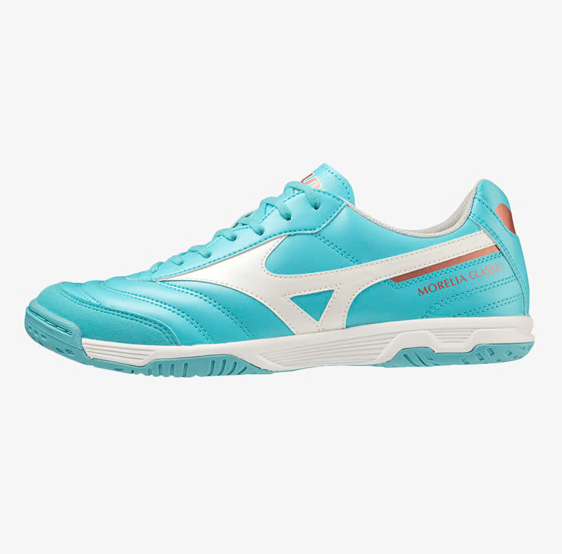 Giày đá bóng Mizuno Morelia Sala Classic IN - Màu Xanh Ngọc - Q1GA230225 là mẫu giày đá bóng mới ra mắt thuộc phân khúc tầm trung của dòng Morelia và được sử dụng cho sân futsal trong nhà. Đôi giày có bộ đệm đế với độ êm ấn tượng giúp các cầu thủ luôn cảm thấy thoải mái trong suốt trận đấu.