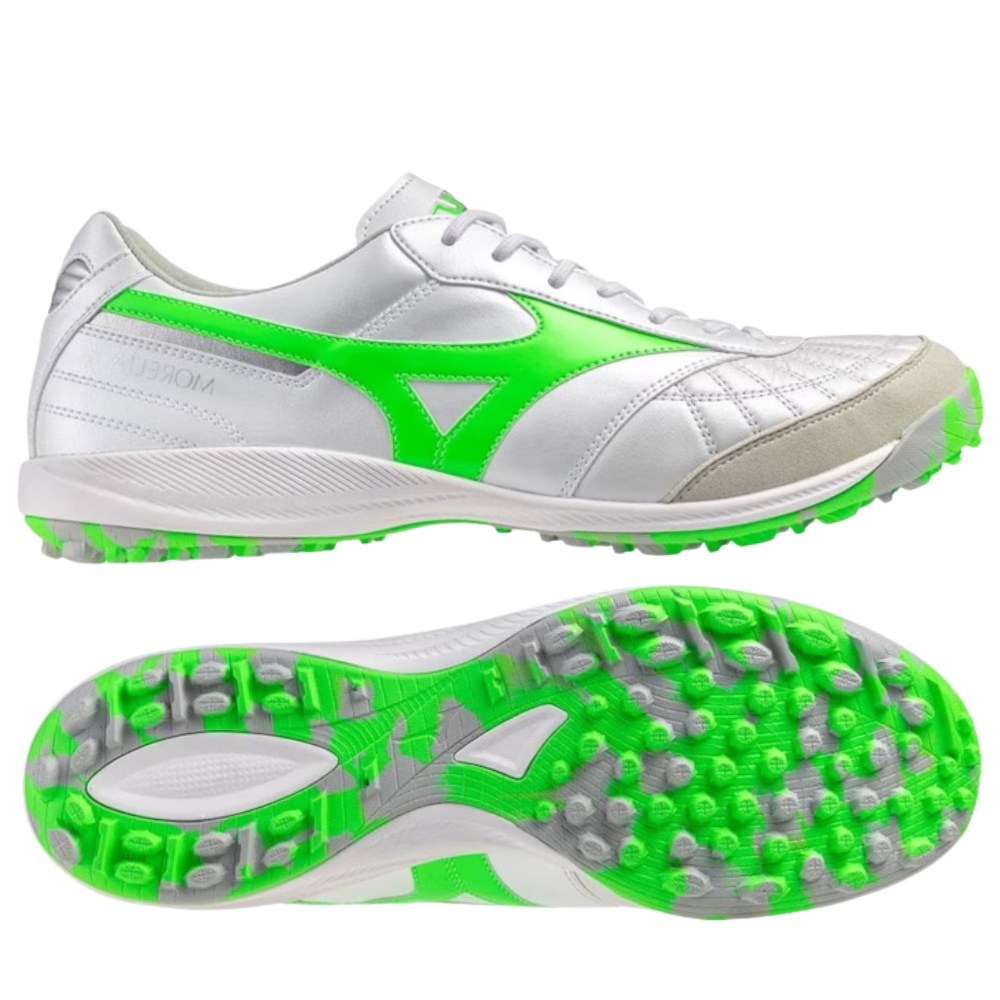 Giày đá bóng Mizuno Morelia Sala Japan TF Frontier - Trắng/Xanh Lá - Q1GB251137 là mẫu giày cao cấp nhất sân cỏ nhân tạo của Mizunovà được gia cổng sản xuất tại Nhật Bản.