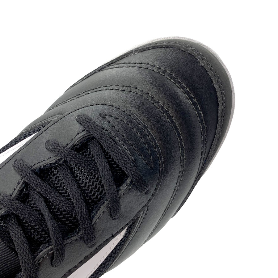 Giày có chất liệu da không thấm nước, ban hoàn toàn tự tin khi chơi bóng bất chấp dưới mọi kiểu thời tiết mưa nắng, chất lượng mặt sân ra sao. Phần má giày ở cả 2 bên trái và phải được thiết kế cách điệu với những đường gờ sóng mềm mại. Nhờ đặc điểm này sẽ giúp việc kiểm soát, sút bóng chính xác hơn. Mũi giày được thiết kế da lộn, thiên theo hướng Futsal, hỗ trợ những pha xử lý bóng bằng mũi giày được gọn gàng, chuẩn xác.