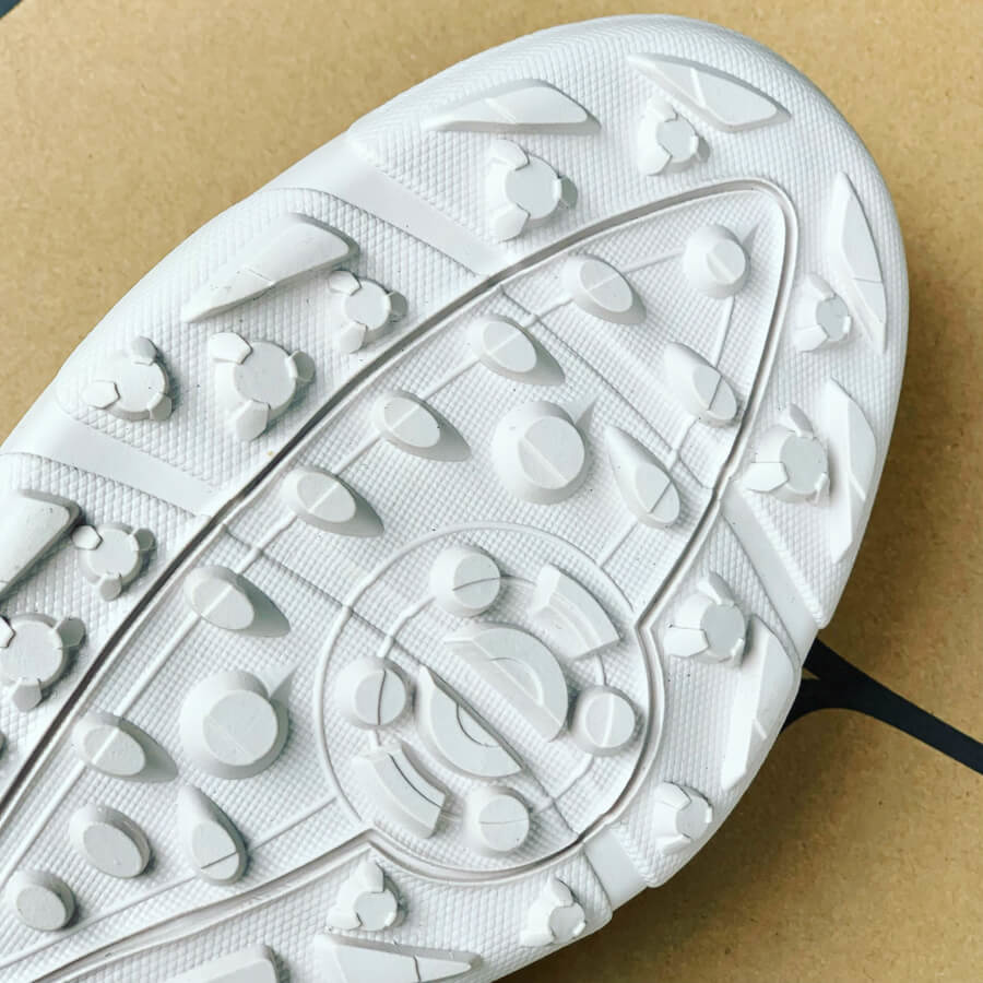 Riêng phần đế giày, có hai loại đinh. Một sự kết hợp vô cùng tinh tế của nhà sản xuất Mizuno. Trong đó, đinh vòng ngoài là các hình tam giác, làm tăng bề mặt tiếp xúc giữa giày và mặt sân. Còn lại là các đinh tròn bên trong có tác dụng tăng khả năng xoay người một cách uyển chuyển trong các pha tranh chấp với đối phương.