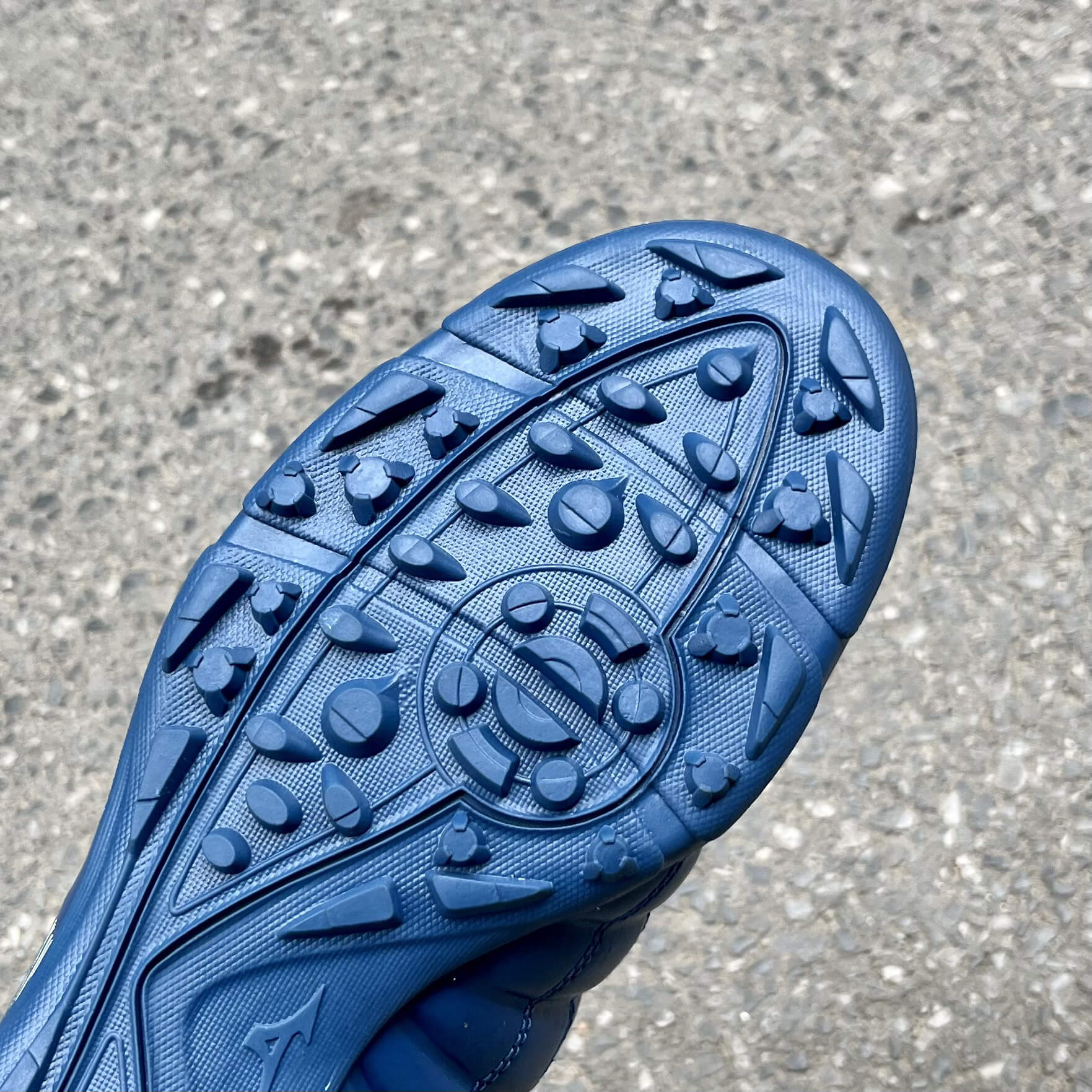 Phần má giày ở cả 2 bên trái và phải được thiết kế cách điệu với những đường gờ sóng mềm mại. Đặc điểm này sẽ giúp việc kiểm soát, sút bóng chính xác hơn. Phần đế giày có hai loại đinh. Đây là sự kết hợp vô cùng tinh tế của nhà sản xuất Mizuno. Trong đó, đinh vòng ngoài là các hình tam giác, làm tăng bề mặt tiếp xúc giữa giày và mặt sân. Còn lại là các đinh tròn bên trong có tác dụng tăng khả năng xoay người một cách uyển chuyển trong các pha tranh chấp với đối phương.