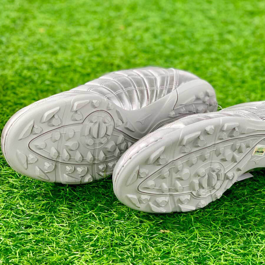 Phần má giày ở cả 2 bên trái và phải được thiết kế cách điệu với những đường gờ sóng mềm mại. Đặc điểm này sẽ giúp việc kiểm soát, sút bóng chính xác hơn. Phần đế giày có hai loại đinh. Đây là sự kết hợp vô cùng tinh tế của nhà sản xuất Mizuno. Trong đó, đinh vòng ngoài là các hình tam giác, làm tăng bề mặt tiếp xúc giữa giày và mặt sân. Còn lại là các đinh tròn bên trong có tác dụng tăng khả năng xoay người một cách uyển chuyển trong các pha tranh chấp với đối phương.