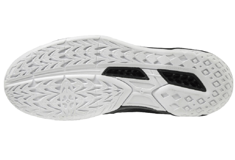- Nhẹ, êm và cực ổn định nhờ Công nghệ ‘Mizuno Wave' độc quyền được Mizuno nghiên cứu và phát triển trên đế Midsole.Đế Nonmarking chống mài mòn, rất bền và di chuyển linh hoạt, không để lại các dấu vết trên sàn thi đấu. Vẻ ngoài hiện đại và đẹp mắt nhờ phần Upper không có đường may.