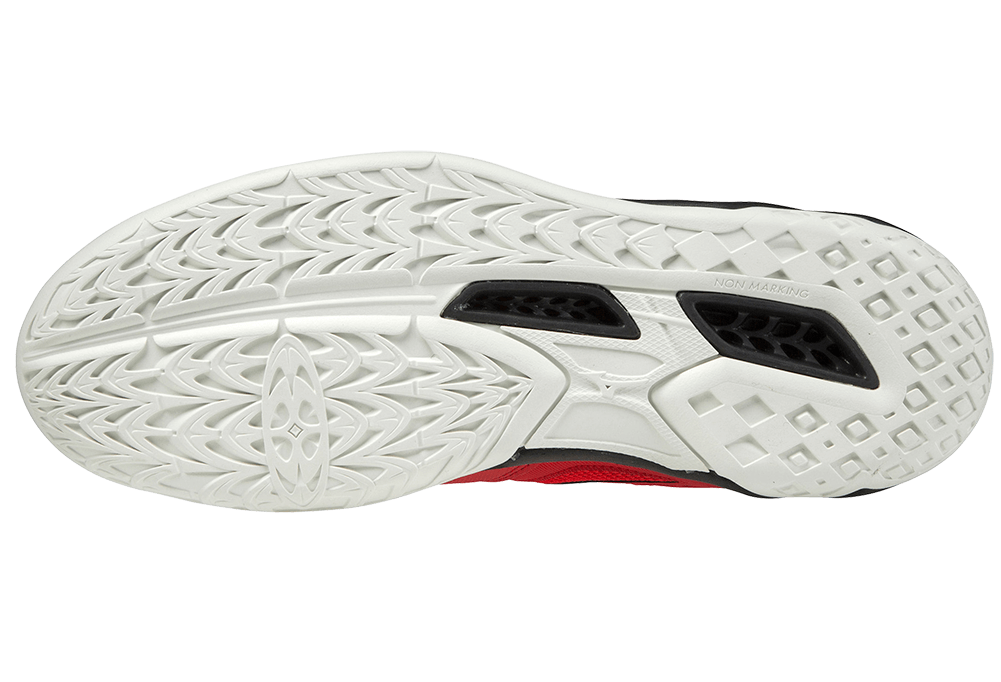 - Nhẹ, êm và cực ổn định nhờ Công nghệ ‘Mizuno Wave' độc quyền được Mizuno nghiên cứu và phát triển trên đế Midsole. Đế Nonmarking chống mài mòn, rất bền và di chuyển linh hoạt, không để lại các dấu vết trên sàn thi đấu. Vẻ ngoài hiện đại và đẹp mắt nhờ phần Upper không có đường may.