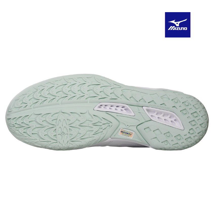 - Nhẹ, êm và cực ổn định nhờ Công nghệ ‘Mizuno Wave' độc quyền được Mizuno nghiên cứu và phát triển trên đế Midsole.Đế Nonmarking chống mài mòn, rất bền và di chuyển linh hoạt, không để lại các dấu vết trên sàn thi đấu. Vẻ ngoài hiện đại và đẹp mắt nhờ phần Upper không có đường may.