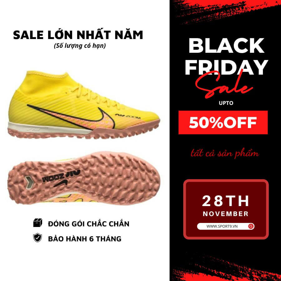 Thế hệ tiếp theo của dòng giày tốc độ Mercurial chính thức được ra mắt và hứa hẹn sẽ lại bùng nổ doanh số. Cải tiến lớn nhất trên thế hệ mới này của Nike là được trạng bị thêm bộ đệm Zoom Air được thiết kế độc quyền. Giày đá bóng Nike Air Zoom Mercurial Superfly 9 Academy TF Lucent - Màu Vàng - DJ5629-780 là mẫu giày chuyên dùng cho sân cỏ 5-7 người. Nằm trong Bộ sưu tập "Lucent Pack" nhằm phục vụ cho giai đoạn đầu mùa giải 22/23.