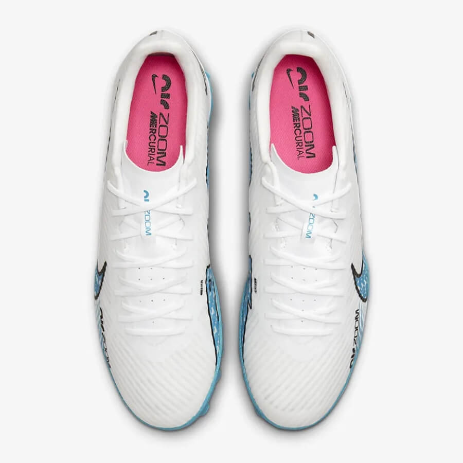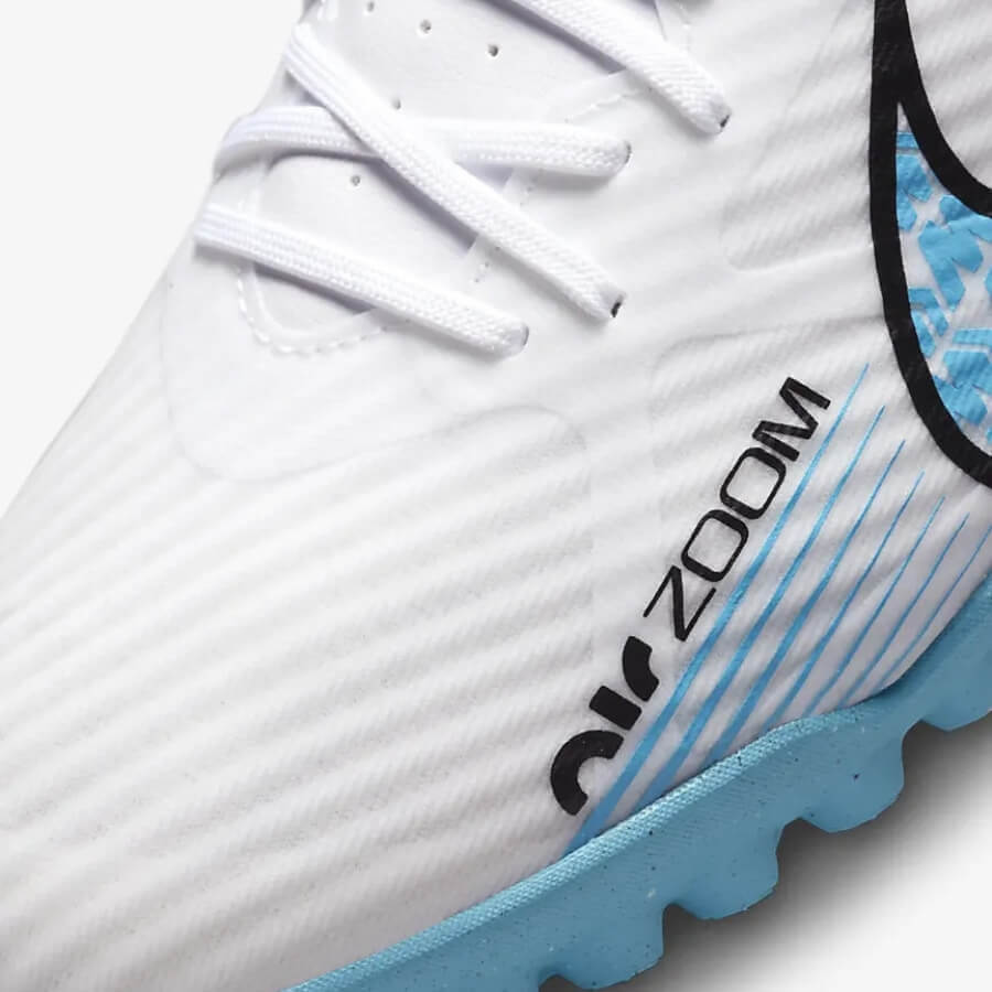 Giày đá bóng Nike Air Zoom Mercurial Vapor 15 Academy TF - DJ5635-146 - Trắng/Xanh là mẫu giày chuyên dùng cho sân cỏ 5-7 người và nằm trong bộ sưu tập Blast Pack khởi động năm 2023.