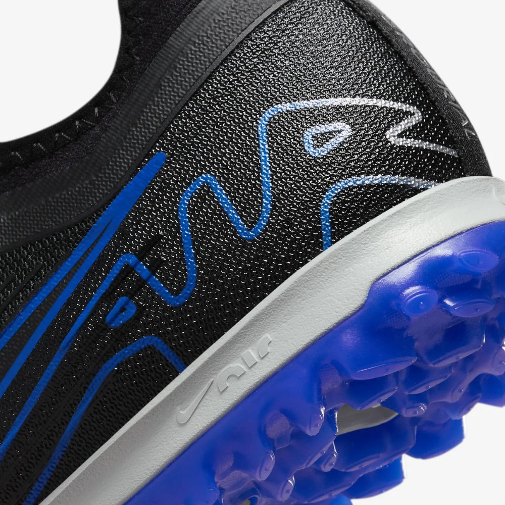 Giày đá bóng Nike Air Zoom Mercurial Vapor 15 Pro TF - Đen/Xanh - DJ5605-040 là mẫu giày chuyên dùng cho sân cỏ 5-7 người. Sở hữu sắc đen làm chủ đạo kết hợp với những chi tiết màu xanh tạo điểm nhấn cho đôi giày. Với gam màu này sẽ phù hợp với những bạn ưa thích sự sạch sẽ, tối giản nhưng không kém phần nổi bật.