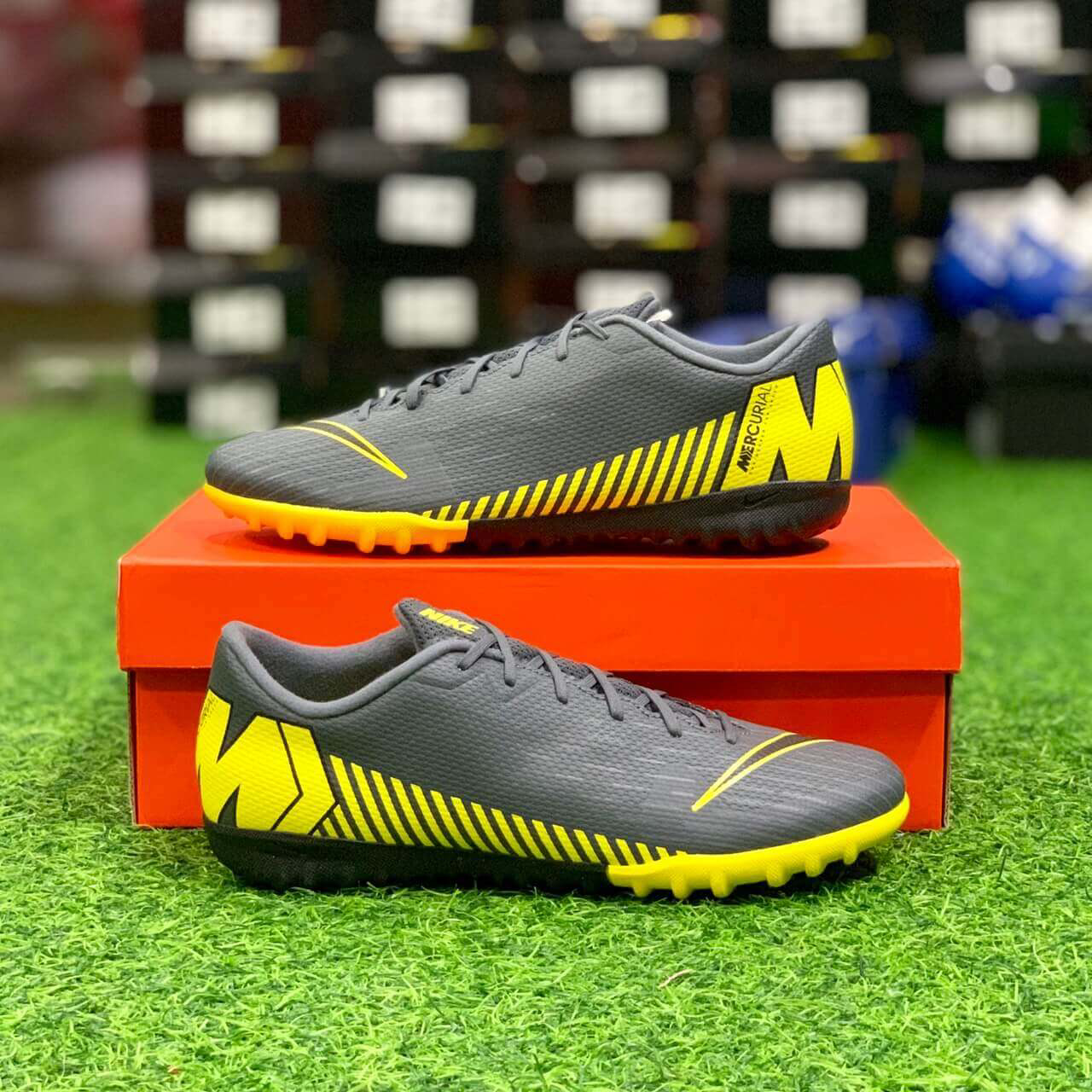 • Giày bóng đá Nike Mercurial Vapor XII Academy TF – Dark Grey/ Black/ Yellow mã AH7384-070 là mẫu giày chuyên dụng cho sân cỏ nhân tạo 5-7 người.