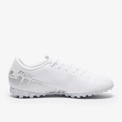 • Giày đá Nike Mercurial Vapor XIII Academy TF - White/Chrome/Metallic Silver là một trong những mẫu giày mới nhất 2019 của thương hiệu Nike, được thiết kế dành cho sân cỏ nhân tạo 5-7 người. Sử dụng chất liệu cao cấp, với lối chơi hoa mỹ, kĩ thuật, tốc độ.