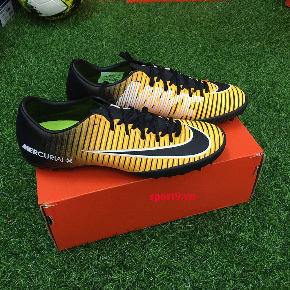 • Giày bóng đá Nike Mercurial Victory siêu phẩm đời thứ 6 của dòng giày Nike Mercurial nổi tiếng, là sản phẩm được ưu chuộng nhất của giày bóng đá Nike, mang nhiều thiết kế mới mẻ và mạnh mẽ giúp tự tin chơi bóng tốc độ trên mặt sân cỏ nhân tạo.
