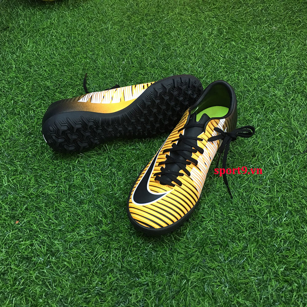 • Giày bóng đá Nike Mercurial Victory là sản phẩm chủ lực của Nike, rất được ưu chuộng tại Việt Nam, upper được làm từ da tổng hợp siêu mềm và siêu bền, có thể ôm theo phom chân của cầu thủ, kiểu không lưỡi gà giúp tránh những phiền phức khi bị lệch lưỡi gà như thế hệ cũ. Đế giày kiểu TF hoàn toàn mới, sử dụng chất liệu TPU cao cấp,  phù hợp chơi bóng trên sân cỏ nhân tạo.