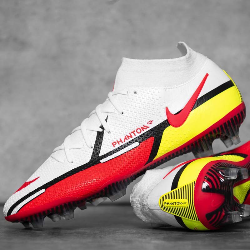Phantom GT II là phiên bản giày đá bóng mới được nâng cấp từ Phantom GT. Nhìn vào đôi giày nổi bật với mặt trên là màu trắng chạy dọc xuống phía dưới có màu đỏ, vàng và đen kết hợp với dấu Swoosh ở mũi giày và gót giày tạo nên một bản phối màu hài hòa và đẹp mắt.