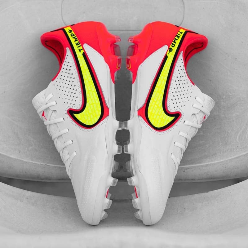 Tiempo legend 9 được ra mắt vào đầu tháng 7, Sau 1 tháng lộ diện thì đây là phối màu thứ 4 của silo này. Phối màu trong Motivation Pack của Tiempo chủ yếu là màu trắng nổi bật với Swoosh màu xanh vôn được bao quanh trong một đường viền màu đen đỏ chạy dọc đến gót chân, phần gót chân có màu đỏ tươi sáng tạo ấn tượng cho đôi giày.