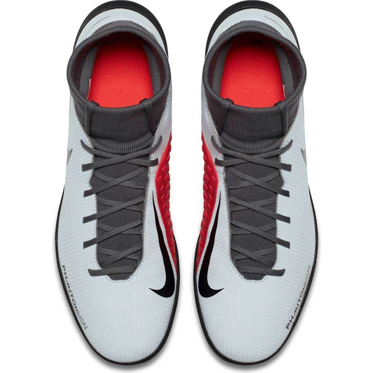 PRECISION AND CONTROLThe Nike Phantom Vision Club Dynamic Fit Turf Football Shoe gives you a snug, comfortable fit with an internal sleeve that hugs your foot and a sock-like collar around your ankle. Textured material wraps your foot to give you precision and control on the pitch.BenefitsFabric sleeve hugs your foot for a snug fitSynthetic leather offers exceptional touch and ball controlDynamic Fit collar wraps your ankle for a sock-like fitGhost lacing system tightens the fit under an overlay for better ball connectionTurf (TF) outsole with rubber studs for traction on synthetic surfacesNon-marking outsole Collezione: Nike Phantom VSN Color: Grey Gender: Man Grounds: TURF Pack: Nike Raised On Concrete