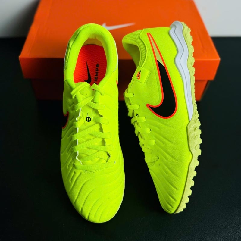 Giày đá bóng Nike Tiempo Legend 10 Academy TF DV4342-701 là phiên bản giày đá bóng sân cỏ nhân tạo nổi bật trong dòng Tiempo thế hệ mới. Phối màu Volt/Black (Vàng Chanh/Đen) mang lại diện mạo nổi bật trên sân, kết hợp cùng cấu trúc tối ưu cho kiểm soát bóng và độ ổn định khi thi đấu phủi.