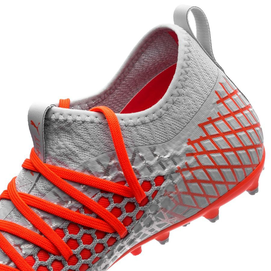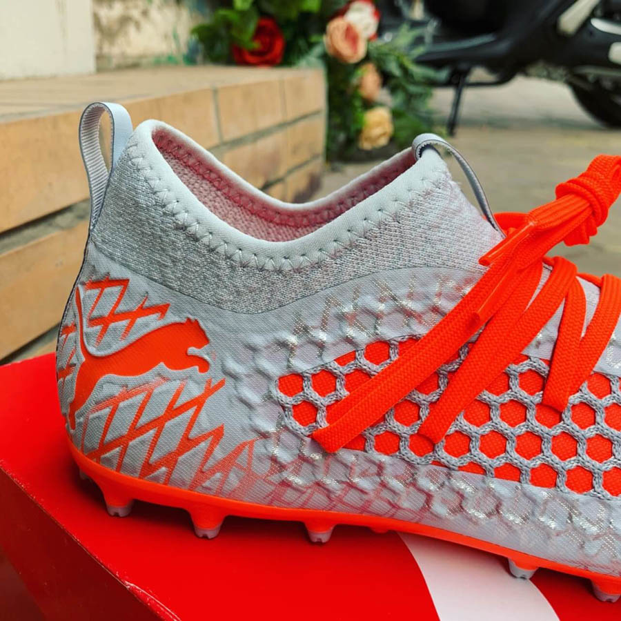 Giày đá bóng PUMA Future 4.3 Netfit MG Anthem - Bạc/Cam - 105684 01 là mẫu giày sử dụng được cho sân cỏ tự nhiên lẫn sân nhân tạo.