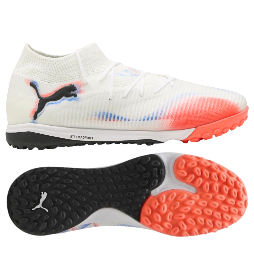 Puma Future 8 Pro Cage TF Untamed – Trắng/Cam (108592 01) là mẫu giày đá bóng sân cỏ nhân tạo cao cấp dành cho người chơi yêu thích kiểm soát bóng, xử lý kỹ thuật và sự linh hoạt tối đa. Với upper LYCRA® ôm chân thông minh, công nghệ GripControl Mesh tăng độ bám bóng và đế TF Cage bám sân ổn định, đôi giày này đáp ứng xuất sắc nhu cầu tập luyện chuyên sâu lẫn thi đấu phong trào chất lượng cao. Một lựa chọn đáng giá trong phân khúc Pro của dòng Puma Future.