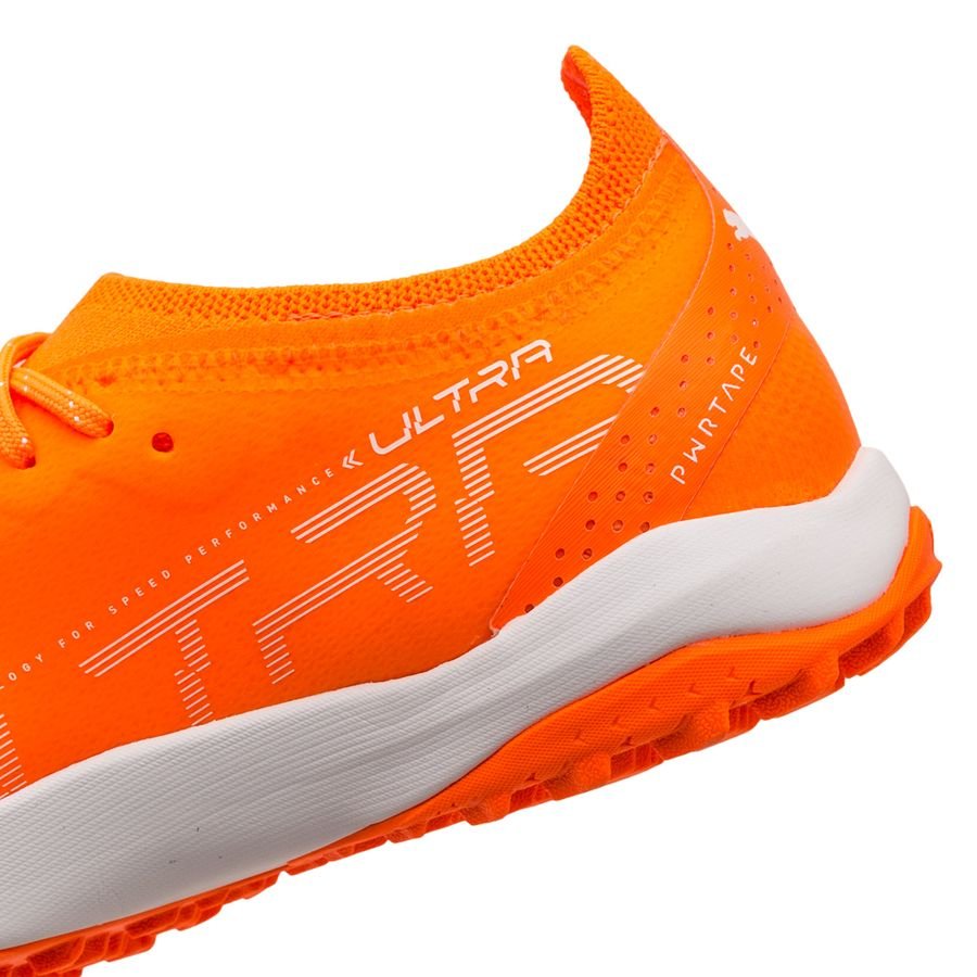 Giày đá bóng PUMA Ultra Ultimate Cage TT Supercharge - Cam/Trắng - 107210 01 là mẫu giày sử dụng cho sân cỏ nhân tạo 5-7 người, được thiết kế cho những cầu thủ có lối chơi tốc độ, kỹ thuật, rê dắt và sút bóng.