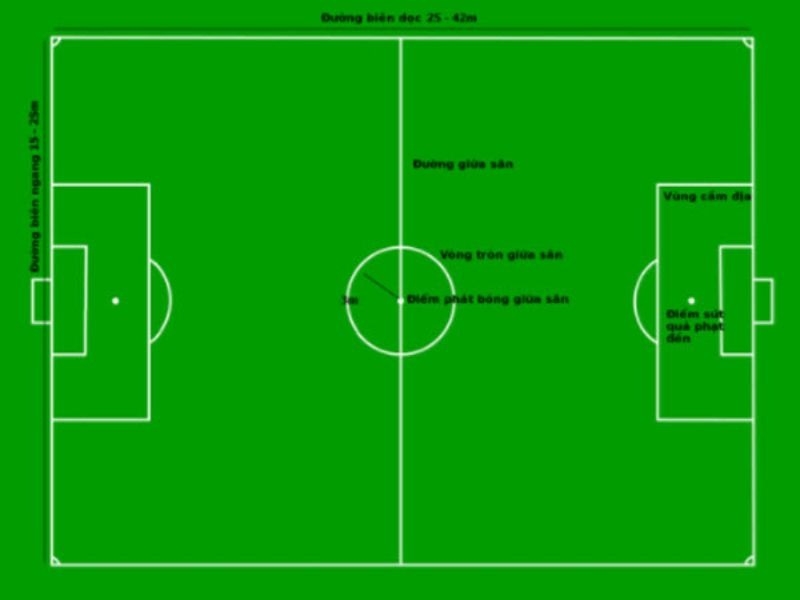 Chiều rộng của đường biên ngang: Từ 45m đến 90m